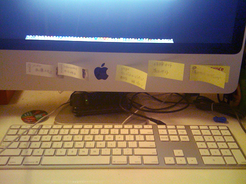 で、いちいちタスクをデジタルで管理したりノートに書いても面倒なので、だいたい私はモニタの下にポストイットでやることを1つづつ優先順位で貼ります。