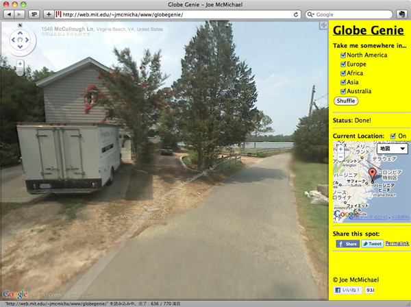 take me someware in…で大陸を選んでシャッフルボタンを押すだけで、世界中のどっかに飛ばしてくれます。