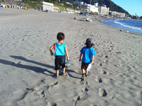 子供たちも慣れたもので、庭でプールに入ったり、前の海で遊んだり、虫を探しに行ったり。