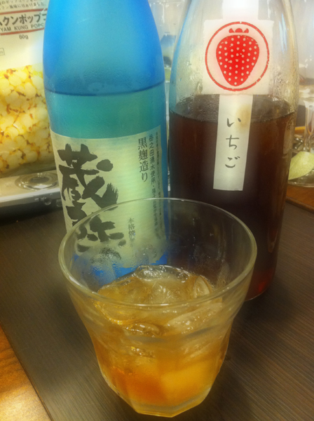 そこで夜飲み始めたのがYリーヌ持参の焼酎&いちごリキュール。